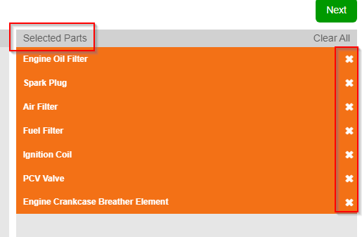 You can then click the white ‘X’ next to any unwanted Part Types, and when ready, click ‘Next’ to proceed with your search