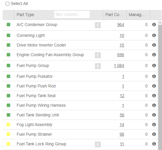 - Click the [ i ] next to a Part Type Group, to see all Part Types included in the group.
