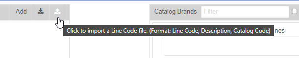 This is done with a CSV file format, in a simple format of (Line Code, Description, Catalog Code). You can also click the ‘Add’ button, to manually add codes if you only have a couple of different codes to map. Example shown here: